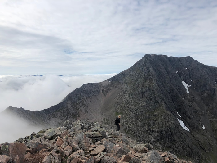 (the first in 6 summit visits!). Susan had set off up the tourist track at 6am arriving on the summit of Nevis at 2pm shortly after we had met the CMD climbers, Cornel and